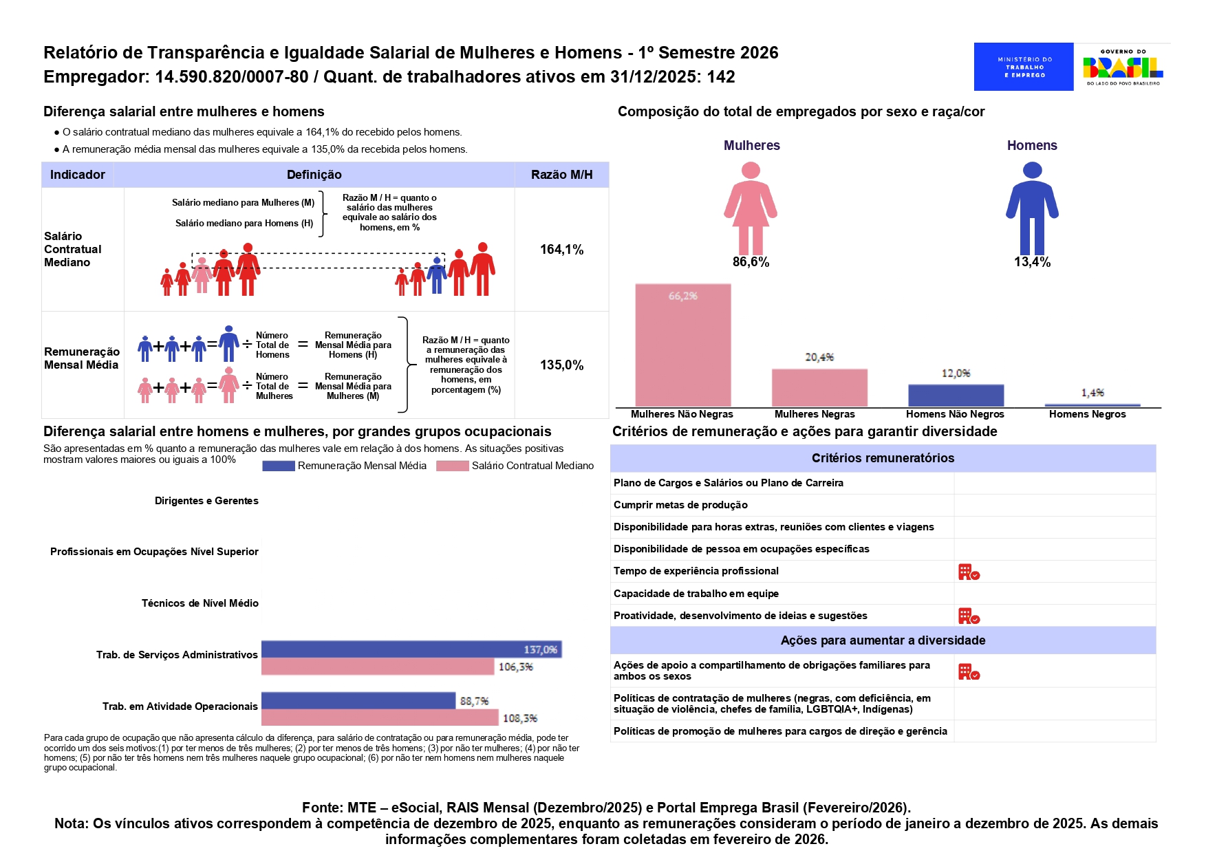O documento apresenta dados sobre a composição do quadro de colaboradores, critérios de remuneração e ações voltadas à promoção da diversidade e da equidade no ambiente de trabalho.